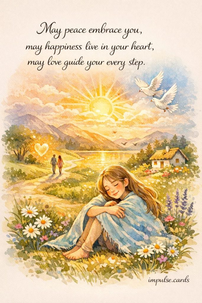 Az idézet üzenete, miszerint a szeretet vezesse lépteinket, a boldogság éljen a szívünkben, és a nyugalom öleljen át minket, arra emlékeztet, hogy az igazi harmónia belülről fakad. A pszichológiai kutatások szerint azok, akik képesek figyelni belső állapotukra és tudatosan gondoskodnak érzelmi egyensúlyukról, könnyebben kezelik a stresszt, kiegyensúlyozottabbak, és kapcsolatuk másokkal mélyebb és támogatóbb lesz.