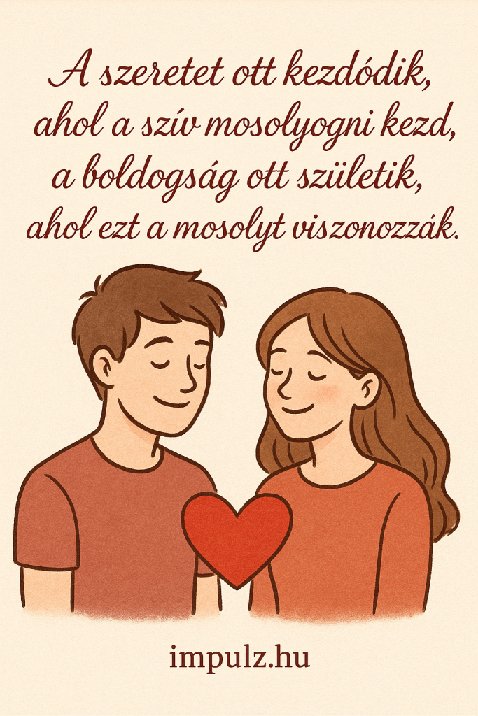 Az idézet nemcsak szépen hangzik, hanem mélyen igaz. A szeretet valóban ott kezdődik, ahol a szív mosolyogni kezd és ott válik igazzá, ahol ezt a mosolyt viszonozzák. A kapcsolatokban nem a hangos, látványos dolgok számítanak leginkább, hanem az a finom melegség, amely két ember között megteremtődik.