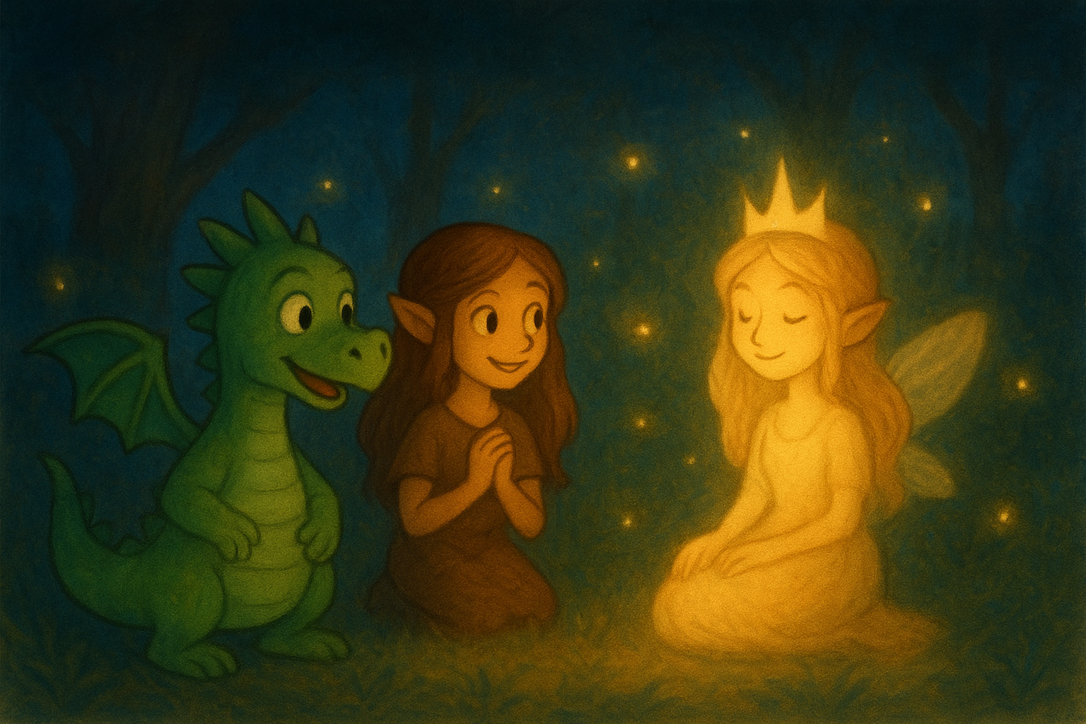A királynő könnyezve nevetett, és fénye újra ragyogni kezdett. A barlang megtelt meleg, aranyló fénnyel.