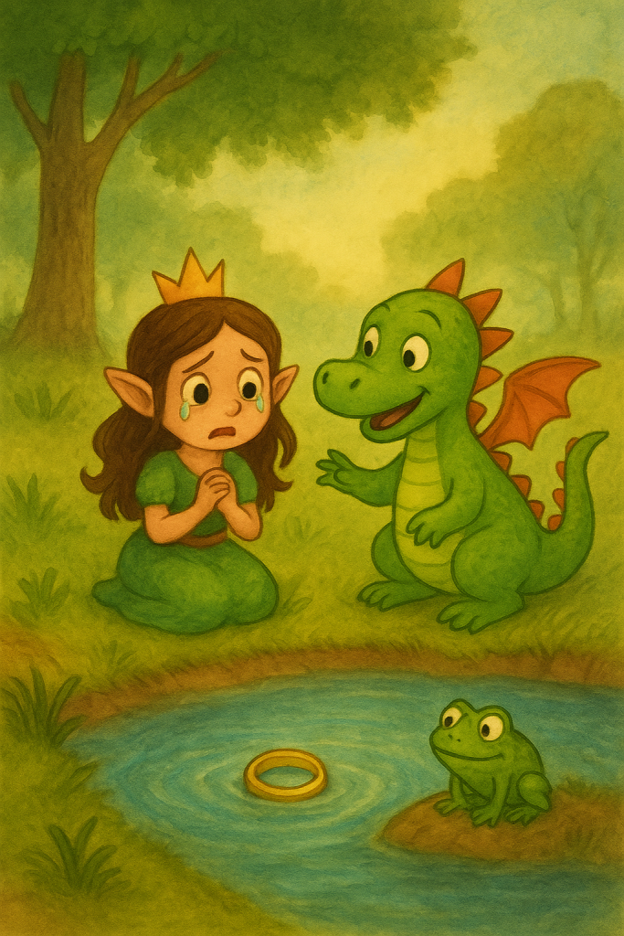 – Én… én… – hüppögte –, behajoltam a víz fölé, hogy megmossam a kezem a tó tiszta vizében … és… és… A gyűrűm… a kedvenc gyűrűm… beleesett a vízbe! Olyan mély a tó, nem látom sehol!
