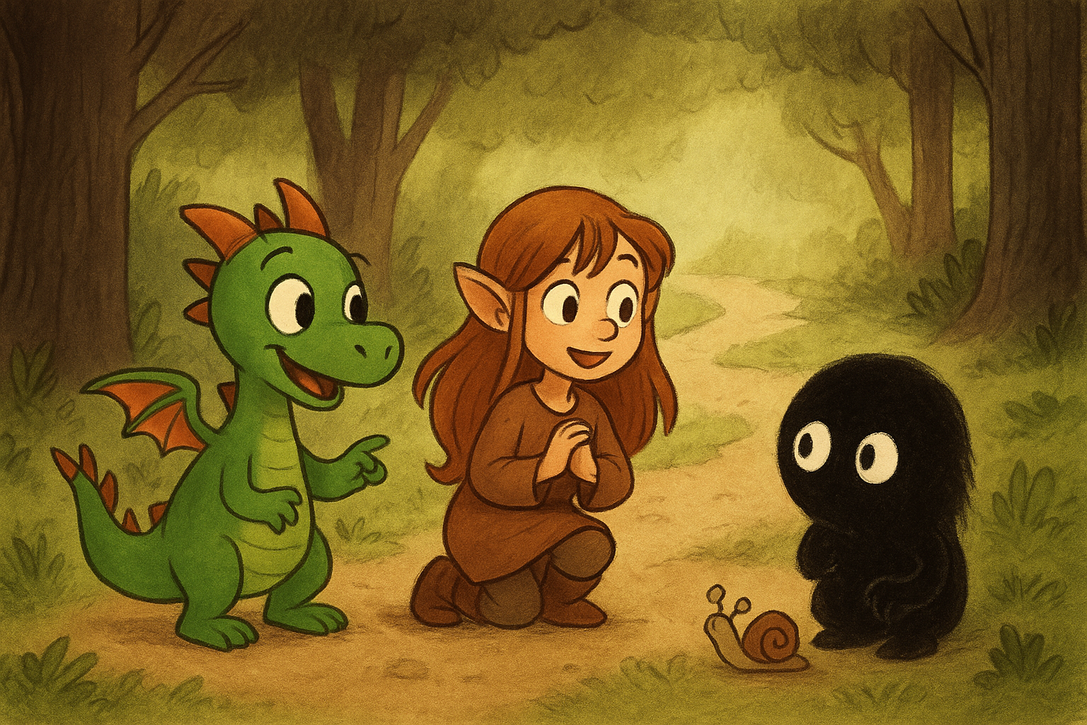 Hablaty, a kis sárkány és Nyafi, a kis kobold lány egy nap vidáman sétálgattak a Szivárványvölgy szélén. A nap melegen sütött, a madarak dalolva repkedtek fölöttük, a két barát pedig épp arról beszélgetett, hogy milyen jó lenne egy békés, kalandmentes napot tölteni.