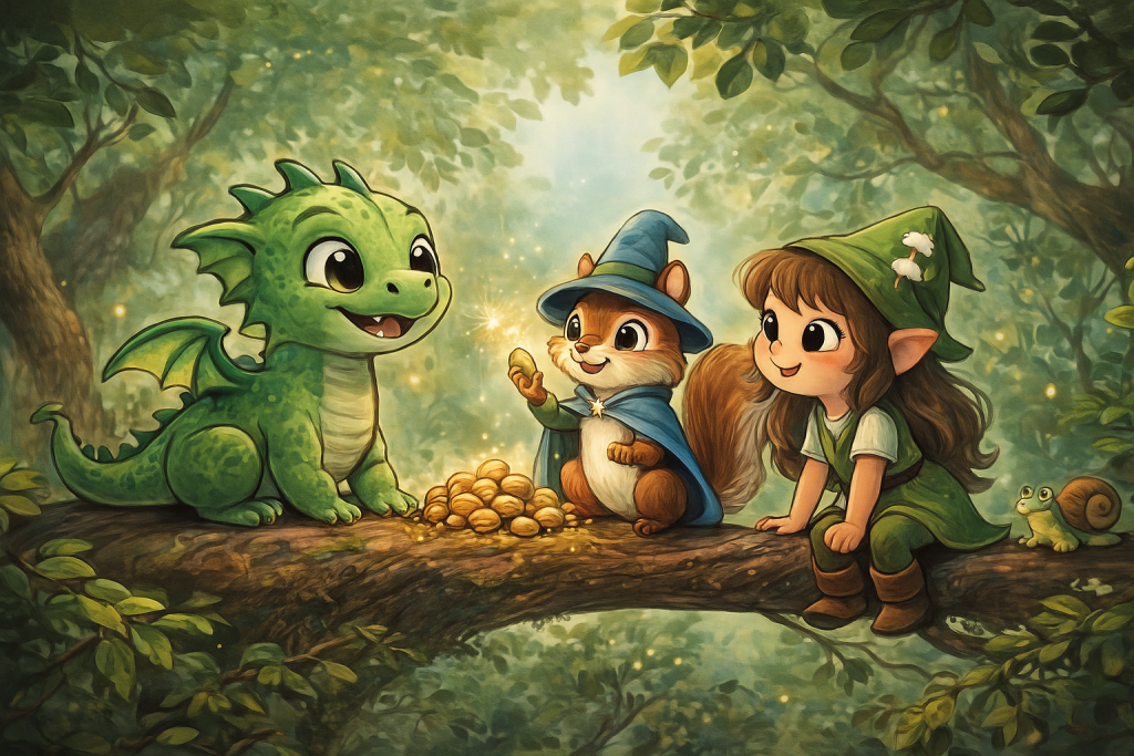 A mogyorókat óvatosan visszatette a fa odújába, mire az egész erdő felragyogott egy lágy, arany fényben.